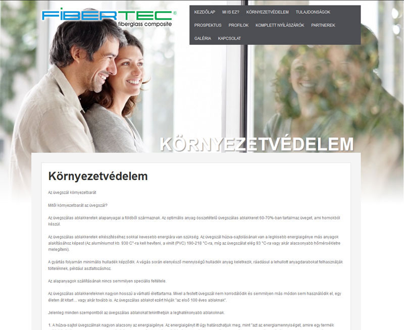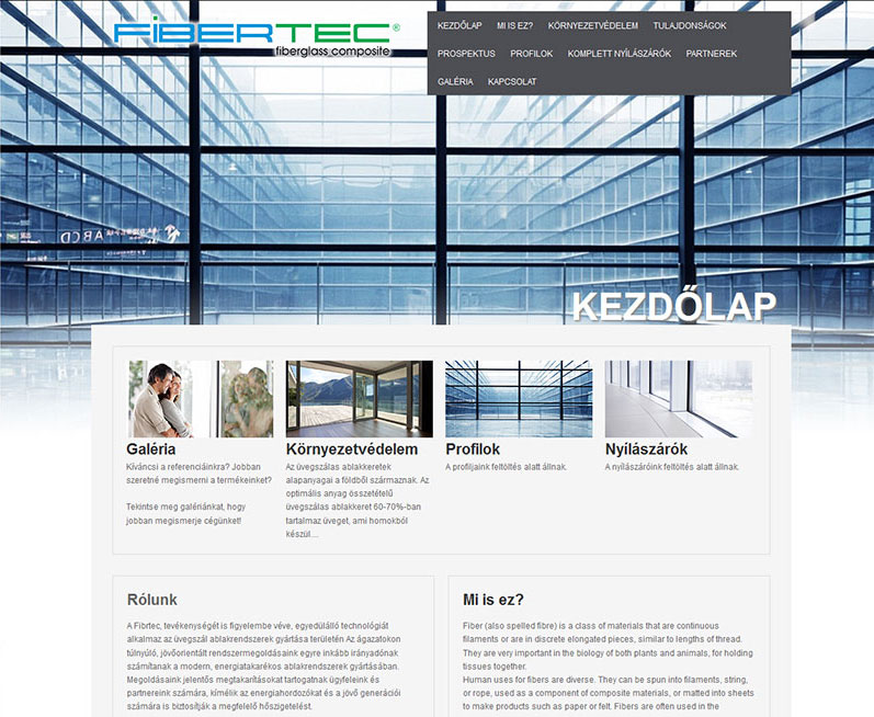 Ablakrendszerek gyártásával foglalkozó cég weboldala
